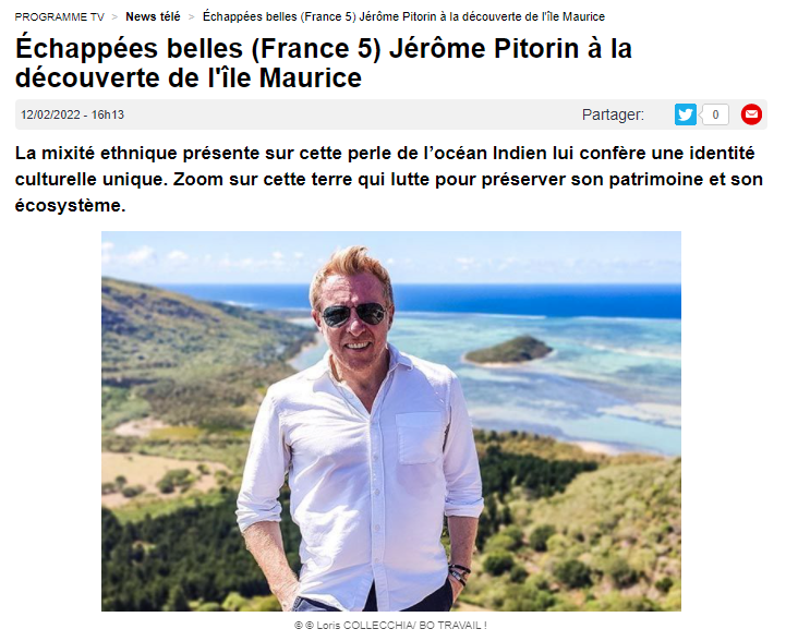 L'émission Échappées belles, consacrée à l'île Maurice a été diffusée sur France 5 hier soir (samedi 12 février 2022) en intégralité.