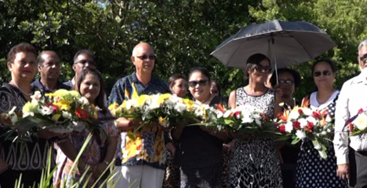 Cérémonie de dépôt de gerbes sur les tombes des esclaves, c’était au cimetière des esclaves à Trou aux Cerfs à l'initiative de la mairie de Curepipe et de l'Ambassade de Madagascar. Présence du maire de Curepipe, Sybille Lolochu.