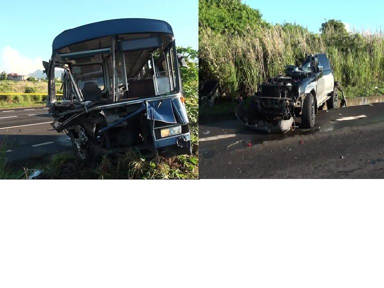 Un 4 par 4 a percuté un autobus de la CNT à Beau Songes à hauteur de Bassin Link Road. Tous les passagers du 4 par 4 sont morts sur le coup. Un piéton qui se trouvait sur les lieux est aussi décédé.