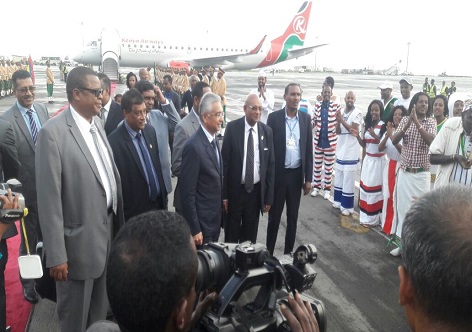 Le gouvernement éthiopien et la commission de l’Union Africaine (UA) ont réservé un accueil chaleureux pour le Premier ministre mauricien Pravind Jugnauth hier soir (samedi 01 juillet) à l’aéroport international Addis Abeba.