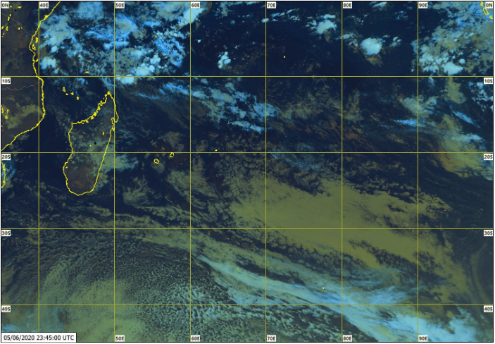 Un assez fort anticyclone s'approche des Mascareignes par le sud-ouest et occasionnera graduellement un temps venteux et froid sur notre région à partir de ce samedi 6 juin soir. Il fera essentiellement beau ce matin et en début de journée. Par la suite, il y aura des périodes nuageuses sur la moitié sud de l'île et le plateau central avec de faibles averses.