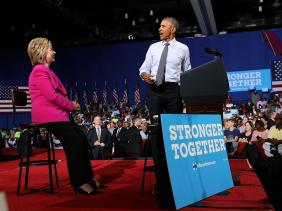 Pour la première fois de la campagne, le président américain s'est affiché hier mardi aux côtés d'Hillary Clinton. En panne de confiance et d'enthousiasme, l'ancienne secrétaire d'Etat compte sur lui pour doper sa candidature. Quatre ans après avoir mené avec succès la bataille pour sa réélection, Barack Obama a replongé dans l’arène politique. Avec un objectif affiché : aider Hillary Clinton à lui succéder à la Maison Blanche en janvier prochain. «Je suis ici aujourd’hui parce que je crois en Hillary Clinton», a-t-il lancé à Charlotte (Caroline du Nord) lors de son premier meeting commun avec l’ancienne Première dame, qui espère profiter de la popularité du Président pour améliorer la sienne.