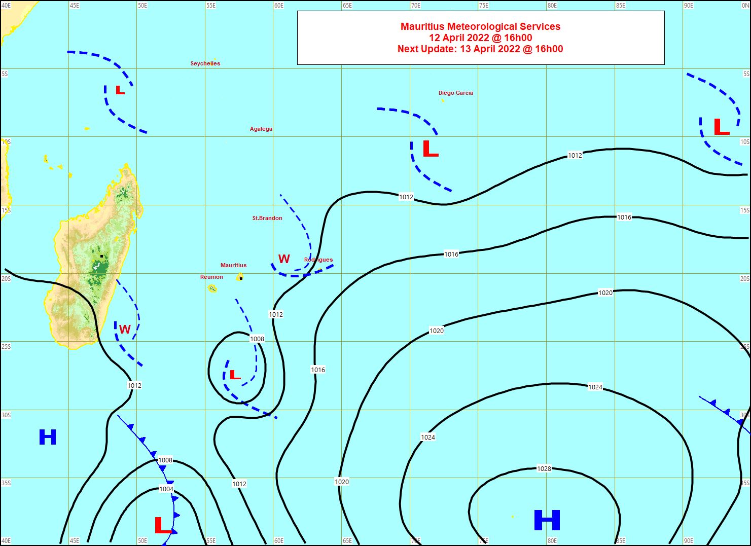 Selon un communiqué de la station météo, il fera plutôt beau temps en ce jeudi 13 avril. Il y aura aussi des développements nuageux dans l'après-midi sur la partie sud, à l'est et sur le plateau central avec des averses localisées qui seront modérées. Les averses pourraient être temporairement fortes dans certaines régions. Des poches de brouillards sont aussi prévues dans certaines régions. La température maximale sera entre 26 et 28 degrés Celsius sur les terrains élevés et entre 30 et 33 degrés Celsius sur le littoral. Des averses localisées, parfois d'intensité modérées accompagnées d'orages isolés sont toujours attendues dans la soirée principalement sur la partie sud de l'île et sur le plateau central. Par la suite, le temps sera beau.
