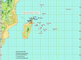 Gamane s'est considérablement affaiblie, même si des nuages convectifs actifs sont encore associés à sa circulation. Les images satellitaires indiquent que Gamane a maintenant émergé dans le canal du Mozambique sous forme d'une perturbation tropicale. La pression centrale est d'environ 1010 hPa et la rafale maximale d'environ 55 km/h. À 13 h, Gamane se trouvait très près de la côte Nord-Ouest de Madagascar, près du point 14,0 degrés Sud et du point 47,1 degrés Est. Sur cette trajectoire, elle se déplace ainsi vers l'Ouest-Sud-Ouest à une vitesse d'environ 15 km/h. Quant à l'évolution future de la perturbation tropicale Gamane, les modèles météorologiques numériques divergent considérablement. Si le système pourrait s'incurver et se déplacer vers l'intérieur de Madagascar à partir de ce soir. Il devrait ensuite traverser le continent et émerger dans l'océan Indien sous la forme d'une zone de basse pression. Il y a aussi une faible probabilité que cette circulation gagne temporairement en force et qu'elle se déplace vers les îles Mascareignes, apportant ainsi une humidité significative au nord des Mascareignes où elle devrait finalement se dissiper.