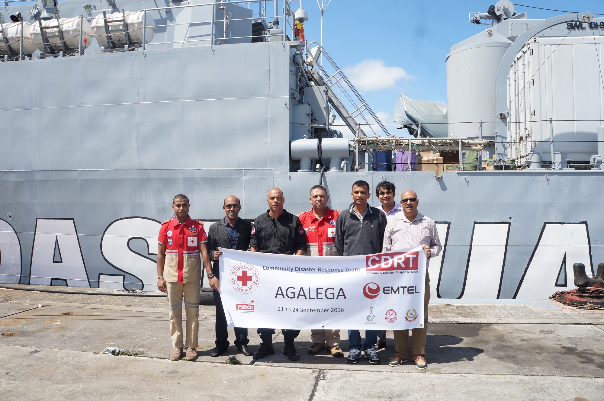 Dans le cadre de son projet « Pour une Société Nationale plus forte et des communautés plus sûres et résilientes, nous nous préparons ! », la Croix Rouge de Maurice (CRMu) s’engage dans une mission pour Agaléga à partir d’aujourd’hui. C’est à bord du CGS Barracuda qu’une équipe composée de la CRMu, de la National Disaster Risk Reduction Management Centre (NDRRMC), de la Mauritius Fire and Rescue Service (MFRS), la National Coast Guard (NCG) et la Special Mobile Force (SMF) a quitté la rade de Port Louis cet après-midi à 14 heures pour une mission de trois jours sur l’Ile.