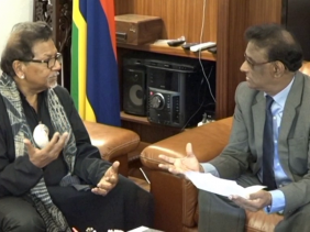 L’artiste indien Satish Gupta est actuellement à Maurice dans le cadre d’un projet de la BASU Foundation of Kolkata. Il a rendu une visite de courtoisie cet après-midi au vice-président de la république, Paramasivum Vyapoory. Satish Gupta est surtout connu pour ses sculptures et compte une trentaine d’expositions à son actif notamment à Amsterdam, New-York et Washington.