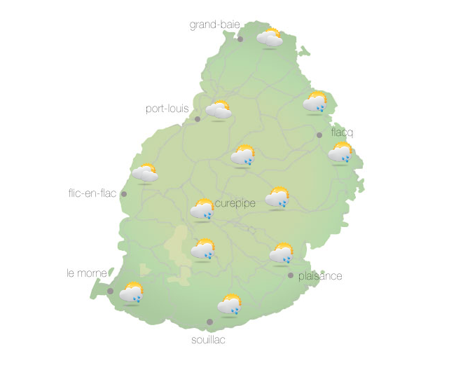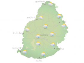 L'assez fort anticyclone au sud-est des Mascareignes maintient un vent modéré sur notre région. Toutefois, des nuages associés à une ligne d'instabilité provenant de l'est influenceront le temps local au cours de la journée. Ce matin, du beau temps sur l'île, mais des périodes nuageuses avec des averses se développeront, surtout sur l'est et le sud de l'île ainsi que sur le plateau central. Les températures maximales varieront entre 21 et 23 degrés Celsius sur le plateau et entre 25 et 28 degrés Celsius sur le littoral. Des averses durant la nuit sont également prévues, avec des minimales entre 16 et 18 degrés sur le plateau central et 20 à 22 degrés sur les côtes. Le vent d'est-sud-est soufflera à environ 20 km/h, atteignant des pointes de 50 km/h. La mer sera forte au-delà des récifs avec des houles du secteur sud de l'ordre de 3 mètres. Les sorties en haute mer, de même que dans les lagons de l'ouest, du sud et de l'est, sont déconseillées.