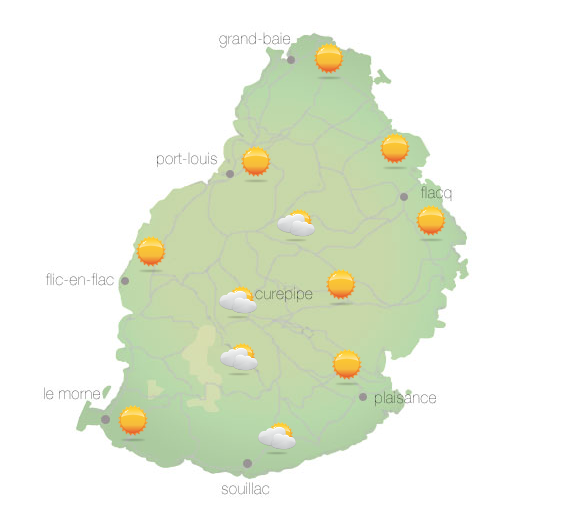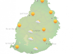 Un vent léger souffle sur notre région. Ensoleillé ce matin, le temps sera nuageux dans l'après-midi avec des averses localisées sur le Plateau Central et la partie sud de l'île. La température maximale sera supérieure à la moyenne avec 23 à 26 degrés Celsius sur le plateau central et 29 à 31 degrés Celsius sur le littoral. Après quelques averses localisées en début de soirée sur la partie sud et sud-ouest, il fera beau en général durant la nuit. La température minimale variera entre 16 et 18 degrés Celsius sur le plateau central et entre 20 et 22 degrés Celsius dans les régions côtières.