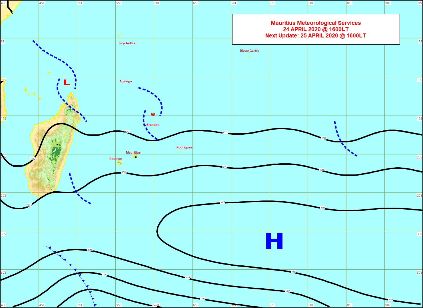 COMMUNIQUÉ DE LA MÉTÉO POUR MAURICE ÉMIS À 16H30 CE VENDREDI 24 AVRIL 2020