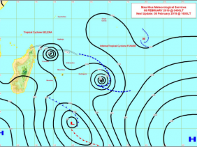 Les vagues déferlantes occasionneront une élévation du niveau de l'eau, entraînant l'inondation temporaire des zones de basse altitude sur les côtes de l'ouest et du nord à l’heure des marées hautes. Il est fortement conseillé au public de ne pas sortir en mer et de ne pas s'aventurer dans ces endroits à risques. Un avertissement de cyclone de classe II est en vigueur à Maurice. Le prochain bulletin sera émis vers 22 h 10.