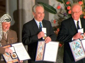 Convaincu de la nécessité de discuter avec les Palestiniens, il reçoit le prix Nobel de la Paix avec Yitzhak Rabin et le Palestinien Yasser Arafat, en 1994, après la signature des accords d'Oslo, dont il fut l’un des artisans.