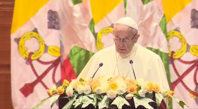 Le pape François a prononcé un discours liminaire au Myanmar, exigeant "le respect de chaque groupe ethnique" mais sans se référer spécifiquement à sa communauté musulmane Rohingya. Les groupes de défense des droits avaient exhorté le pape à utiliser ce terme pour soutenir la communauté. Cependant, l'église catholique dans le pays lui avait dit que le terme pourrait causer des difficultés pour les catholiques.