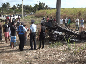 Un accident de la route a eu lieu en ce 2 novembre a Fond du Sac au rondpoint du Vale. C'est une voiture, qui, après une sortie de route, s'est renversée dans un champ de cannes. Blessés, les 6 occupants du véhicule ont été transportés à l'hôpital SSR. L'un d'entre eux est décédé dans la soirée alors qu'il subissait une intervention chirurgicale