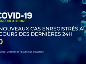 Aucun nouveau cas de la COVID-19 n'a été enregistré à Maurice au cours des dernières 24 h. C'est ce qui ressort du communiqué du ministère de la Santé, émis ce lundi 8 juin 2020. Le pays ne compte que trois cas actifs (importés). 324 patients sont considérés comme guéris de cette maladie. 489 passagers sont en quarantaine. 133,883 tests ont été effectués à ce jour.