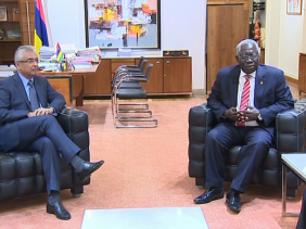 Le Premier ministre, Pravind Kumar Jugnauth, a reçu la visite du Senior Minister du Ghana, Yaw Osafo Maafo ce vendredi 19 octobre au Bâtiment du Trésor à Port Louis. Plusieurs sujets ont ete abordés, notamment la fonction publique et nos relations bilatérales. Le Ministre ghanéen était accompagné des membres de sa délégation et du Ministre mauricien de la fonction publique, Eddy Boissezon.
