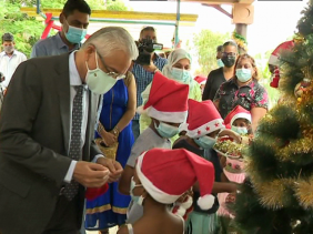 Le Premier ministre a célébré la Noël avec les enfants et responsables de SOS Village ce jeudi à Beau-Bassin. Au menu de ces célébrations organisées par le ministère des Arts et du Patrimoine culturel, distribution de jouets, chants et programme culturel. Pravind Jugnauth a choisi de partager ces moments forts en émotion avec ces enfants en cette période festive.
