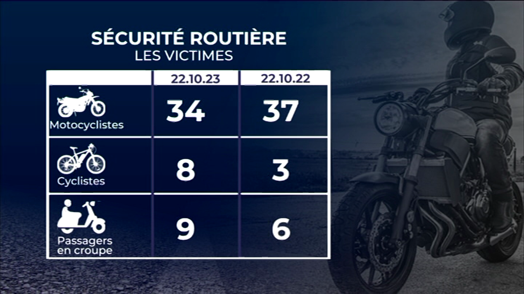 Les chiffres sont clairs : les usagers de deux-roues sont les plus vulnérables sur nos routes. Les motocyclistes et les cyclistes figurent parmi les premières victimes, représentant en effet plus de la moitié des morts enregistrés sur nos routes au 22 octobre dernier. Depuis la semaine dernière, la police accentue sa présence et effectue des contrôles, tout en sensibilisant les conducteurs de deux-roues aux dangers auxquels ils s'exposent en cas d'imprudence.