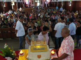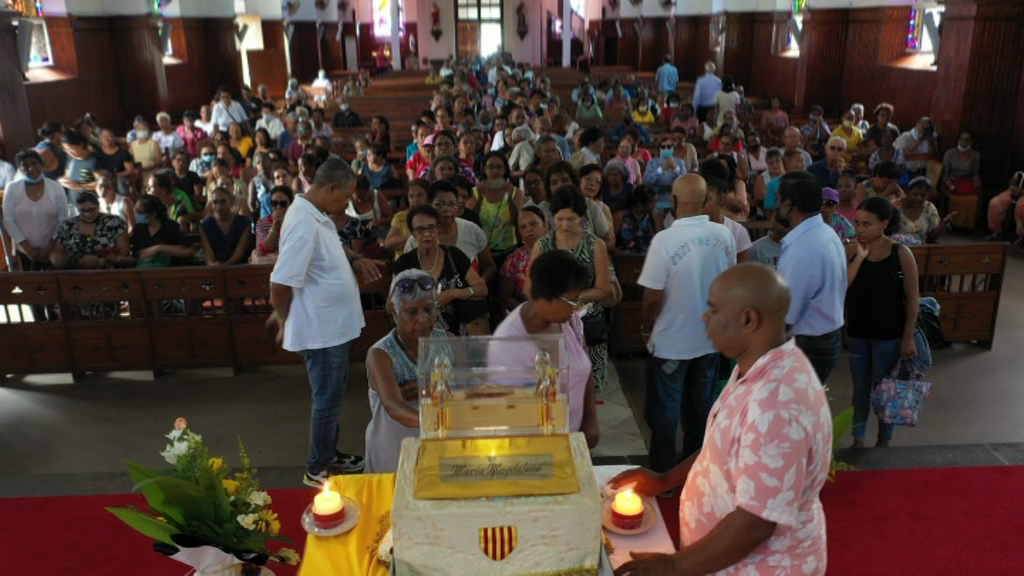 La vénération de la relique de Sainte-Marie Madeleine a commencé dans les différentes paroisses du pays. Dès son arrivée hier matin, elle a été installée dans l'église St Jean où un grand nombre de fidèles est venu lui porter leurs intentions de prière.