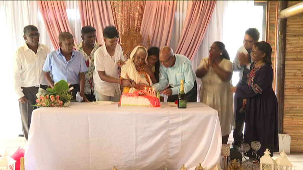 Rookmeen Juggurnauth est la première centenaire de l'année et la 182e du pays. C'est entourée de ses proches qu'elle a fêté son siècle de vie hier, mardi 02 janvier 2024 au Domaine Seetloo à Vacoas. Qualifiée de battante par ses proches, elle exerçait autrefois comme laboureuse dans les champs de canne jusqu'à sa retraite, il y a des années de cela. Les précisions de Mehryne Annooar ci-dessous :