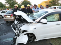 Cet accident hier après-midi à Calebasses, impliquant 5 véhicules : 3 voitures, un minibus et une motocyclette.