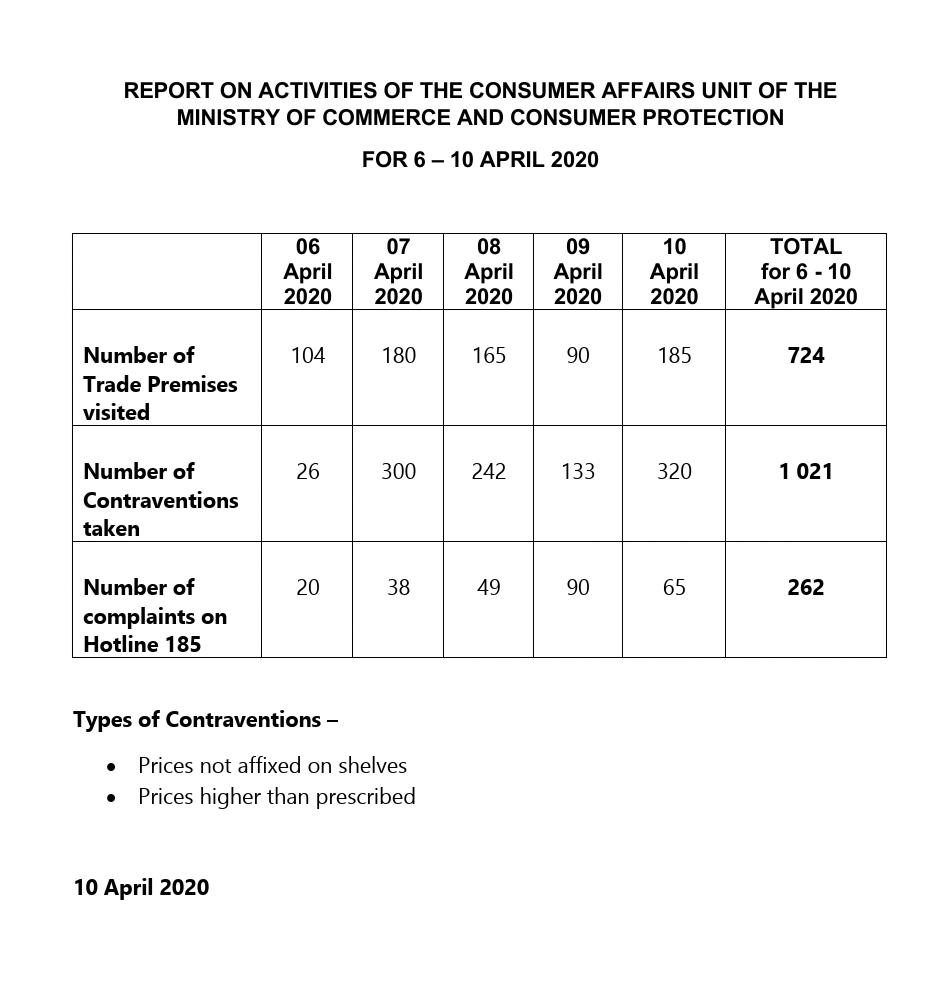 Du 6 avril à ce jour, 1 021 contraventions ont été dressées pour notamment des hausses injustifiées des prix des produits dans des commerces à travers le pays.