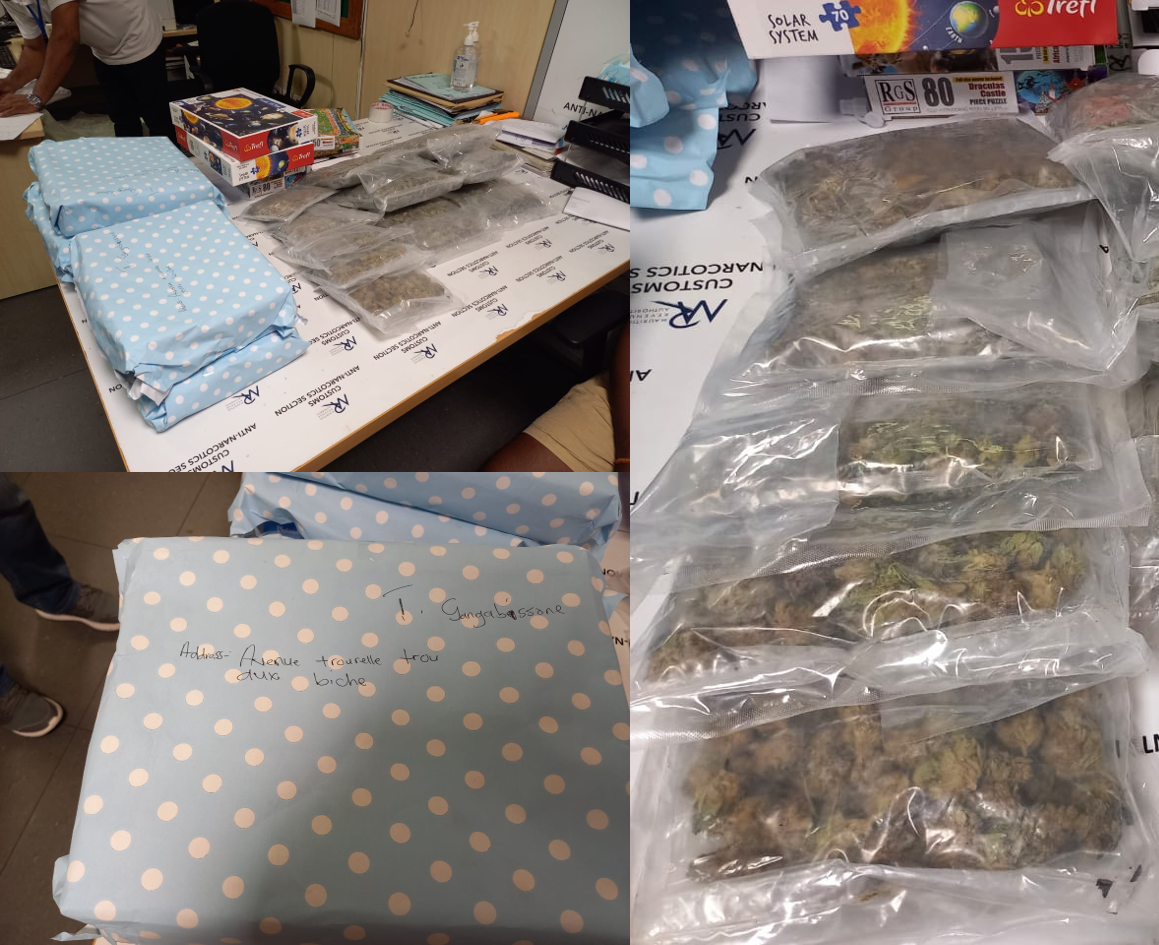 Hier, jeudi 20 avril 2023, Kevin Arthur Pearman, âgé de 40 ans et consultant en agriculture basé à Johannesburg, en Afrique du Sud, a été intercepté par les douaniers et les forces de l'ordre en fin d'après-midi. Il transportait une boîte à puzzle contenant 1,829 kg de cannabis. Un dénommé Reetesh Dawoo, trentenaire résidant à Calimaye Lane, Paillotte, Quatre Bornes, attendait l'arrivée de Pearman à l'aéroport dans une voiture conduite par Poomesh Jugessur, un employé chez PhoenixBev et résidant à Solférino No 5, Vacoas. À l'heure actuelle, l'Anti-Drug and Smuggling Unit (ADSU) de l'aéroport mène une enquête sur cette affaire. Il est à noter que la valeur marchande de la saisie est estimée à plus de Rs 1,8 million.