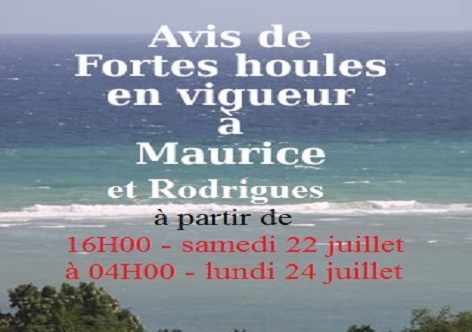Un autre train de fortes houles de l'ordre de 4 à 6 mètres venant du sud-ouest influencera l'état de la mer dans la région de Maurice à partir de samedi après-midi.