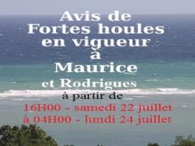 Ce train de houles atteindra la région de Rodrigues dimanche matin et rendra la mer très forte et houleuse.