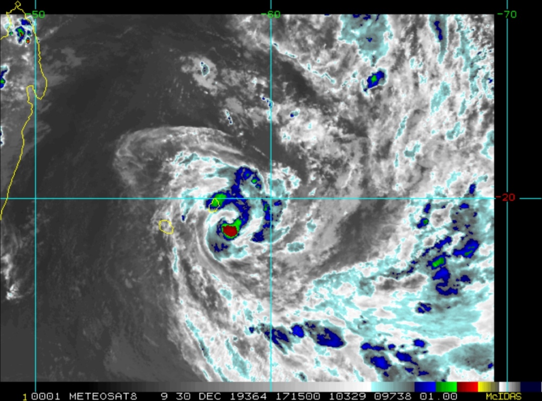Un avertissement de cyclone de classe III est en vigueur à Maurice. Dixième bulletin de cyclone pour Maurice émis à 2210 heures ce lundi 30 Décembre 2019. Toutes les observations indiquent que la forte tempête tropicale CALVINIA maintient son boucle et s'est rapprochée davantage de l'île. A 2200 heures, elle était centrée autour du point 20.8 degrés sud en latitude et 58.1 degrés est en longitude, soit à environ 70 km au sud-est de Mahebourg. CALVINIA reste une forte tempête tropicale de petit diamètre. Les rafales sont de l'ordre de 130 km/h dans un rayon de 40 km autour du centre. Un mouvement vers l'ouest emmènerait le centre près de Maurice et des conditions cycloniques, c'est à dire, des rafales de l'ordre de 120 km/h, pourraient être ressenties sur l'île. De ce fait, CALVINIA représente toujours une menace pour Maurice.