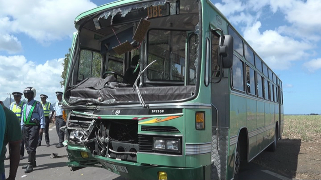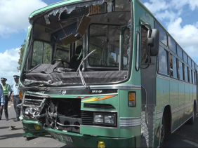 Collision frontale entre deux autobus ce matin aux alentours de 9 heures dans les environs du Stade Anjalay à Belle Vue Harel.