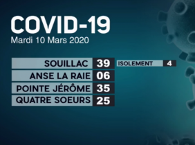 À Anse La Raie : 6 personnes sont en quarantaine. À Pointe Jérôme : 35 personnes en quarantaine dont 2 etrangers. À Quatre Sœurs : 25 personnes en quarantaine.