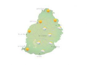 Après quelques faibles ondées tôt ce matin sur les hauts, le temps sera ensoleillé sur l'ensemble de l'île. Un courant d'air léger à modéré circule sur notre région.