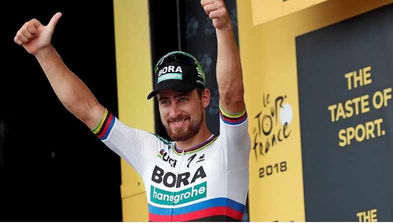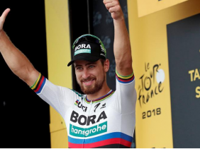 Le peloton tout juste sorti des Alpes, Peter Sagan a remis ça. Le Champion du monde slovaque a remporté, le vendredi 20 juillet, la treizième étape du Tour de France, lors d'une arrivée groupée à Valence. En l'absence de Fernando Gaviria et Dylan Groenewegen, qui ont abandonné en montagne, le coureur de la Bora a battu d'un rien au sprint Alexander Kristoff et Arnaud Démarre, à l'arrivée de cette étape de transition avant le massif pyrénéen. C'est la troisième victoire sur cette édition pour Peter Sagan, qui conforte son maillot vert. Au classement général, le Gallois Geraint Thomas reste confortable leader devant son coéquipier Chris Froome et Tom Dumoulin. un seul changement dans le Top 5 : l'absence de Vincenzo Nibali. L'Italien, qui a chuté jeudi dans l'ascension de l'Alpe d'Huez, n'étais pas au départ.
