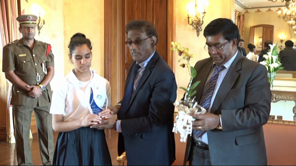 Suite à sa récente nomination comme artiste de l’UNESCO pour la paix, Jane Constance a été reçue par le Président de la République par intérim Barlen Vyapoory ce vendredi (6/10/17) à la State House à Réduit.