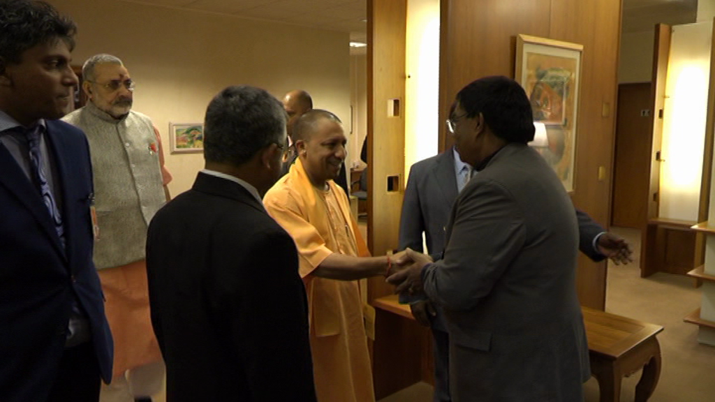 Le Yogi Adityanath est accompagné d’une forte délégation d’Uttar Pradesh entre autres le Ministre d’état pour les Micros, Petites et Moyennes Entreprises.