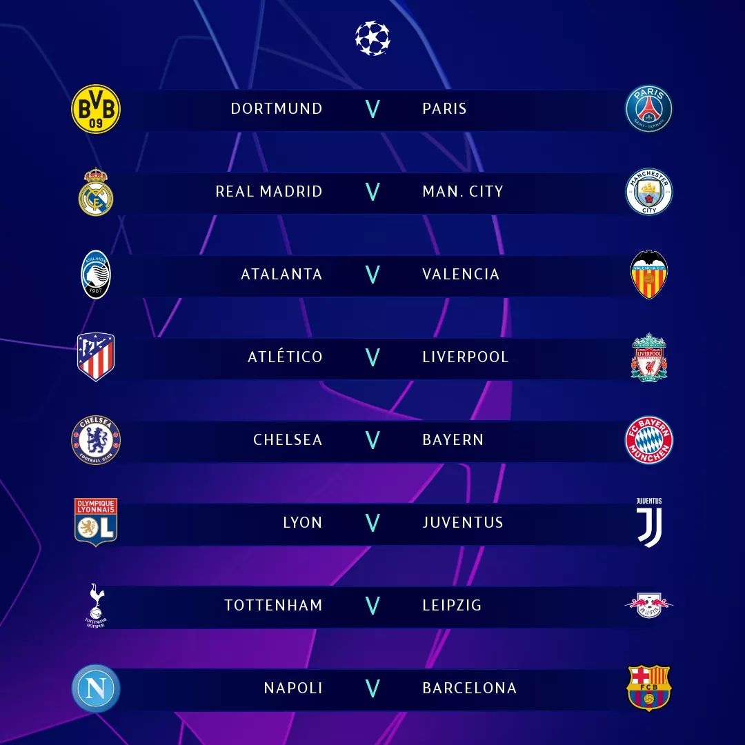 Le tirage au sort des huitièmes de finale de la Ligue des Champions a été effectué aujourd’hui (lundi 16 décembre) à Nyon, en Suisse. La principale affiche mettra aux prises le Real Madrid à Manchester City. L’équipe tenante du titre Liverpool aura comme adversaire l'Atletico Madrid. Le FC Barcelone affrontera Naples alors que Chelsea a hérité du Bayern Munich. Les matchs aller des 8emes de finale sont prévus du 18 au 26 février.