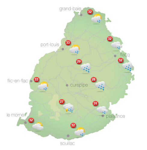 Vue que la zone d'instabilité est quasi-stationnaire dans le parage de Maurice, les conditions atmosphériques sont favorables pour d'autres fortes pluies au cours de la journée au Sud et  le Plateau Central. Ces averses déborderont dans d'autres secteurs par moments. Ces fortes averses de courte durée occasionneront des accumulations d'eau et des crues dans les endroits à risques. Ainsi, un avis de pluie torrentielle est en vigueur à Maurice.