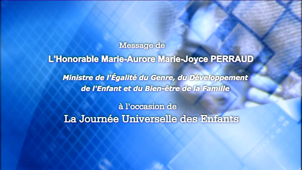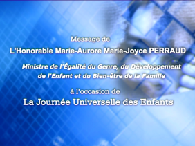 Message de la Ministre de l'Égalité du Genre, Développement de l'Enfant et du Bien-être de la Famille, Hon. Aurore Perraud, à l'occasion de la Journée Universelle des Enfants