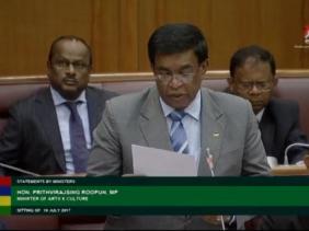 Un extrait de la declaration du ministre Prithviraj Roopun au Parlement.