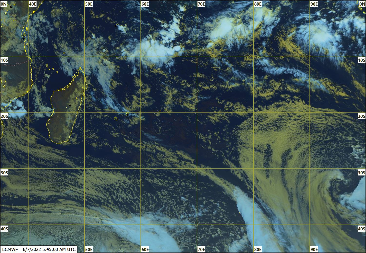 Un courant d'air modéré et perturbé circule sur notre région. Périodes nuageuses ce matin avec des averses passagères principalement à l'est, au sud et sur les terrains élevés. Les averses seront temporairement d'intensité modérée et deviendront relativement plus fréquentes au cours de la journée. Des poches de brouillard sont aussi attendues principalement sur les régions en hauteurs. Après quelques averses passagères dans la soirée, le ciel sera mi-couvert en général. La température maximale variera entre 21 et 23 degrés Celsius sur le plateau central et entre 25 et 27 degrés Celsius sur le littoral. La température minimale variera entre 16 et 18 degrés Celsius sur le plateau central et entre 19 et 22 degrés Celsius sur les régions côtières. Le vent soufflera de l'est-sud-est à environ 20 km/heure avec des pointes de 50 km/heure aux endroits exposés. La mer reste forte au-delà des récifs avec des houles du Sud-ouest de l'ordre de deux mètres 50. Les sorties en haute mer sont déconseillées.