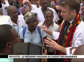 Le président Emmanuel Macron invite les Mahorais à "se relever ensemble". À son arrivée ce jeudi matin à Mayotte, il a effectué un survol en hélicoptère pour évaluer les dégâts causés par Chido, avant de se rendre au CHM, puis dans l'un des quartiers sinistrés.