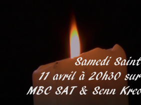 Suivez la messe du Samedi Saint présidée par le Cardinal Maurice Piat à 20h30 ce soir sur MBC Sat et Senn Kreol. Et un peu plus tard à 22h40, place à la Veillée Pascale avec le Pape François sera en direct du Vatican sur Senn Kreol. Sachez aussi que le 12 avril, vous pourrez suivre en direct la bénédiction Urbi et Orbi, à la ville et au monde du Pape François à 12h45 sur la Senn Kreol. Et le lundi 13 avril, ce sera la rediffusion sur MBC 1 à 13h de la messe présidée par le Pape François à Marie Reine de la Paix le 9 septembre dernier.