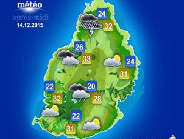 WEATHER NEWS FOR MAURITIUS ISSUED AT 16h05 THIS SUNDAY 13 DECEMBER 2015.