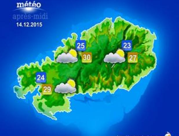The maximum temperature will vary between 26 and 28 degrees Celsius over the central plateau and will vary between 30 and 33 degrees Celsius elsewhere.