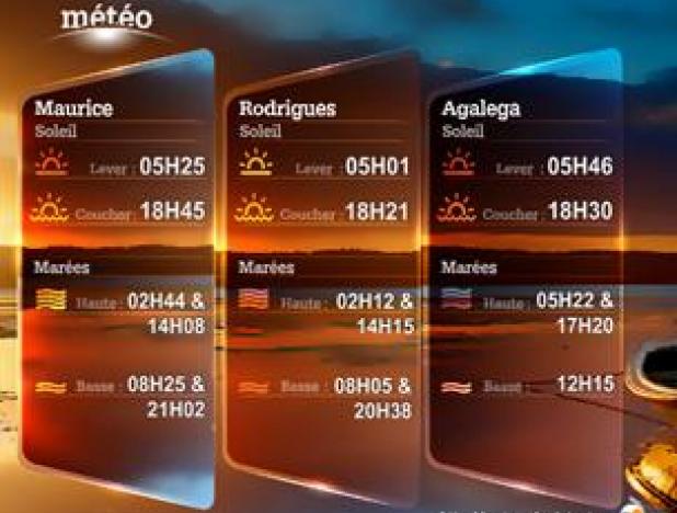 The minimum temperature will be around 20 degrees Celsius over the highgrounds and will vary between 22 and 26 degrees Celsius along the coasts.